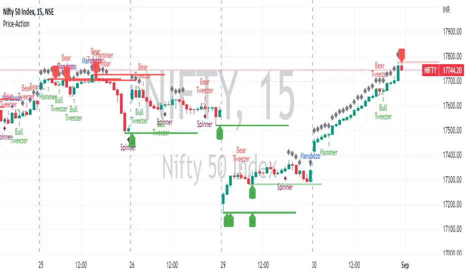 - As we already mentioned our intention is to include Price (in forms of Support / Resistance), Volume and Action (sentiments in terms of Candlestick patterns) into a single place. And so far, to the best of our knowledge, we could not come across a single indicator provides all of these.