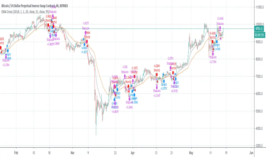 This is a strategy tester for EMA crossovers that enables you to include Stop Losses and select the backtesting period. You can also change the EMAs, apply a commision and the amount of starting capital.