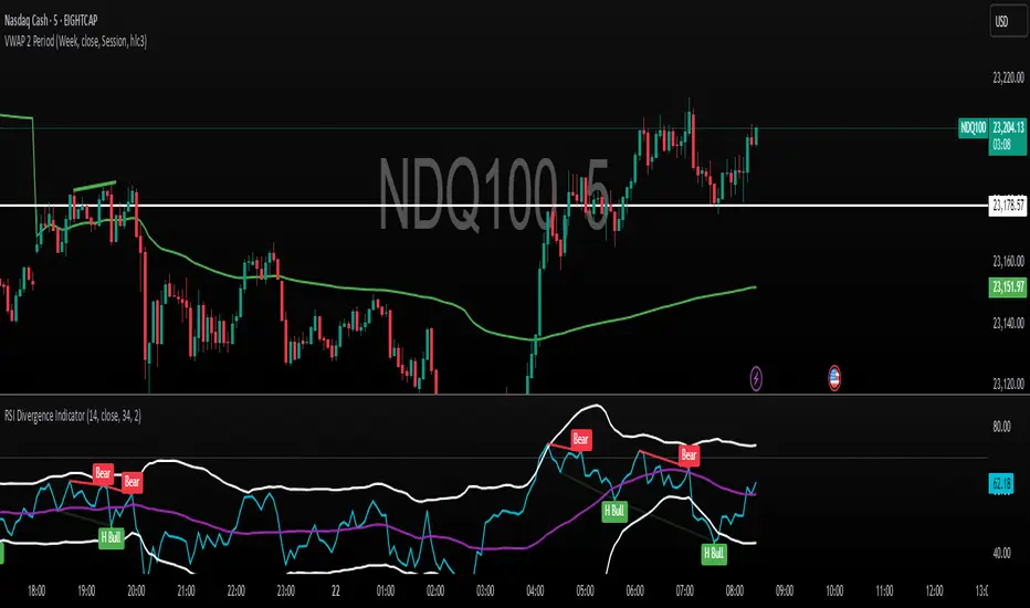 RSI indicator i built to identify divergances quickly with bolling bands... strategy should not be used alone...