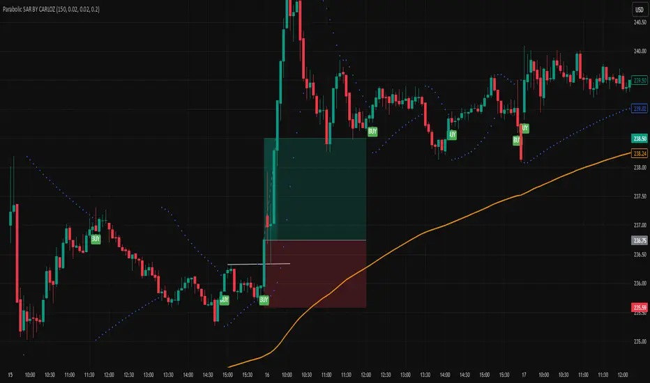 The Parabolic SAR (developed by Welles Wilder) is a trend-following indicator used to identify potential entry and exit points in the market.