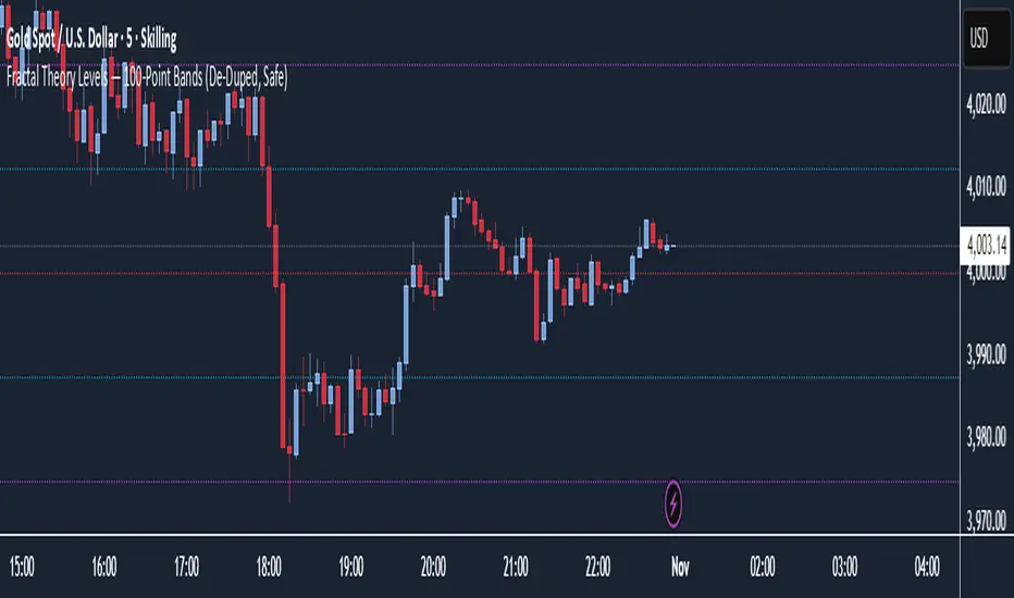 This indicator is a mathematically structured market framework that maps institutional fractal levels within fixed 100-point bands. It gives traders a precise visualization of how price fractals subdivide inside large ranges, revealing zones institutions often use for liquidity engineering and high-probability reversals.