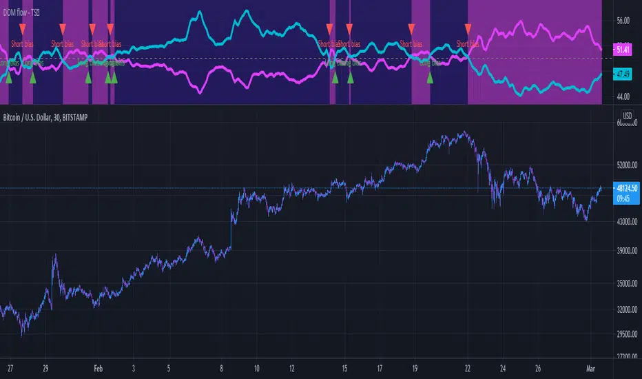 comparing the current pair (blue) to the USDT (tether pair in fuchsia), this is purely a visual aid and should not be used alone for entries and exits, but more so to help determine the bias direction for that pair.