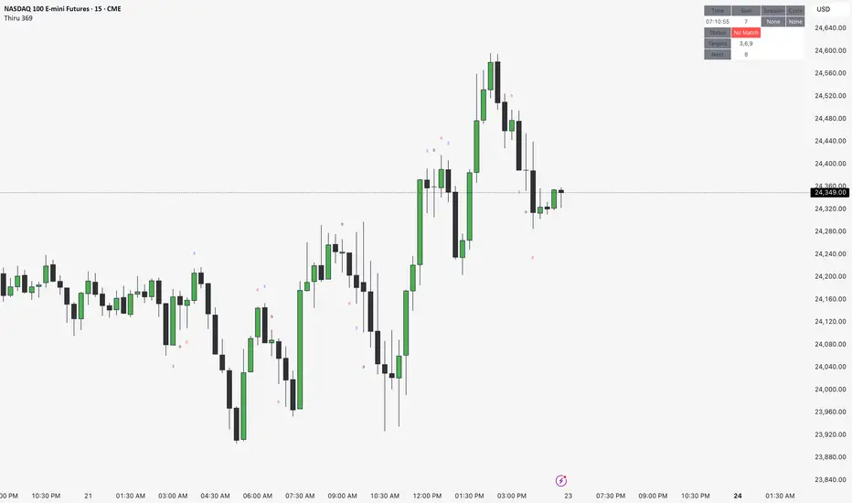 **Thiru 369 Labels** is a sophisticated time-based indicator that calculates the numerical sum of time digits and displays visual labels when the sum matches harmonic values (3, 6, or 9). Based on the mathematical principles popularized by Nikola Tesla, this indicator helps traders identify potential market timing opportunities during major trading sessions.