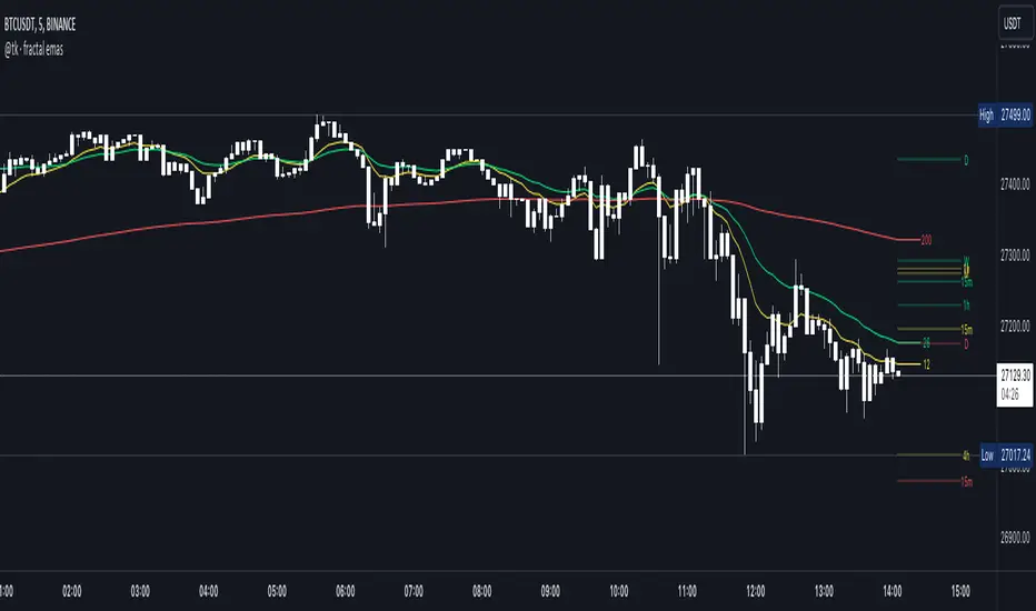 This script is an indicator that plots short, medium and long moving averages for multiple fractals. This script was based on sharks EMAs by rlvs indicator, that plots multiple rays for each fractals into the chart. The main feature of this indicator is the customizability. The calculation itself is simple as moving average.