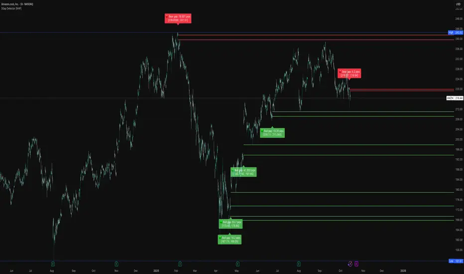 🔶This is a Pine Script code for a “Gap Detector” study in TradingView. The script scans for gaps in the price chart and labels them as either ‘🟢Bull gap’ or ‘🔴Bear gap’. Here’s a brief explanation of the code: