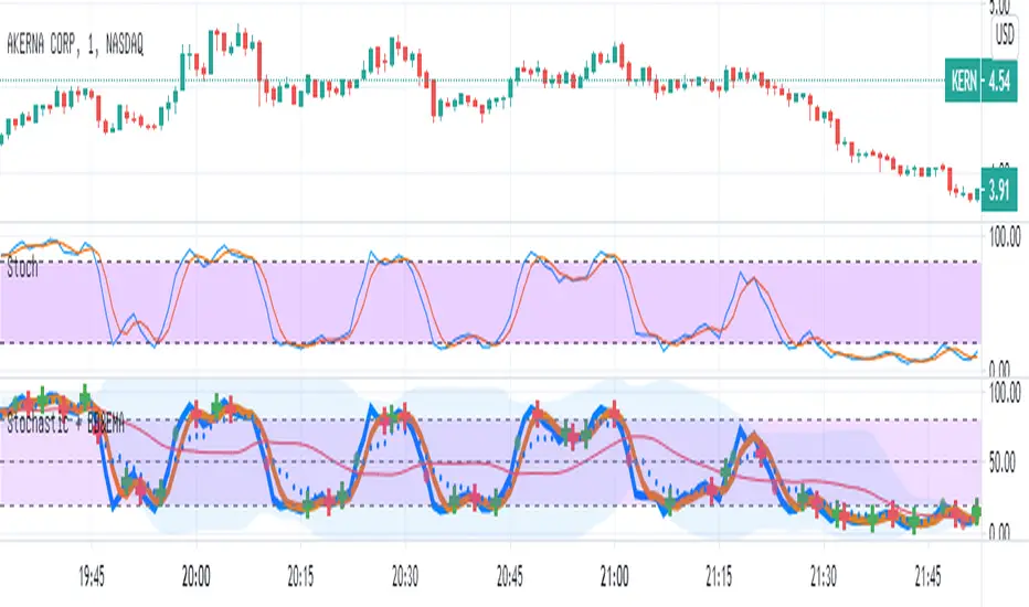Stochastic (STOCH) [oscillator K ] with BB (Bollinger Bands).