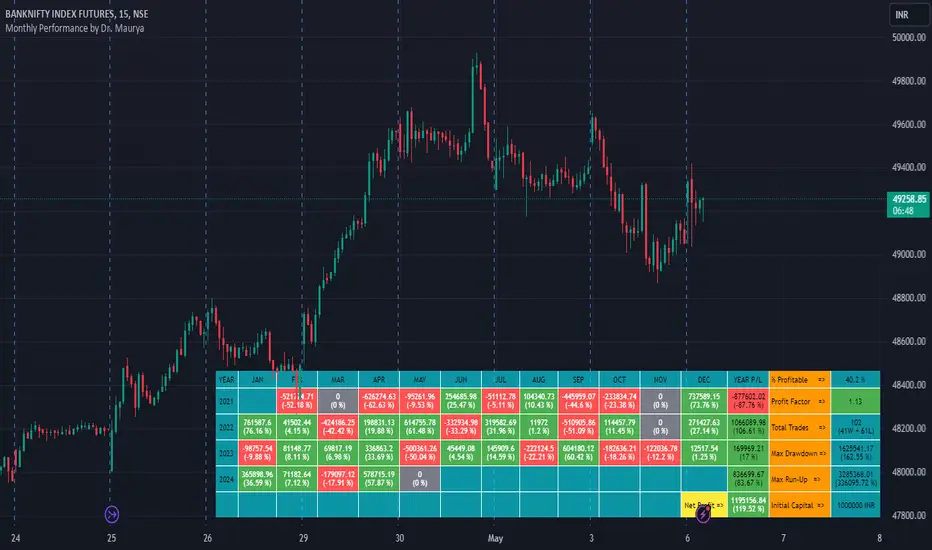 This Strategy script is not aim to produce strategy results but It aim to produce monthly PnL performance Calendar table which is useful for TradingView community to generate a monthly performance table for Own strategy.