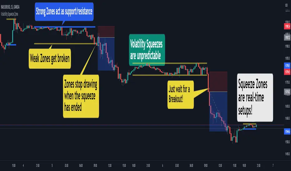 It automatically plots Support and Resistance levels on the chart during periods of volatility squeeze.