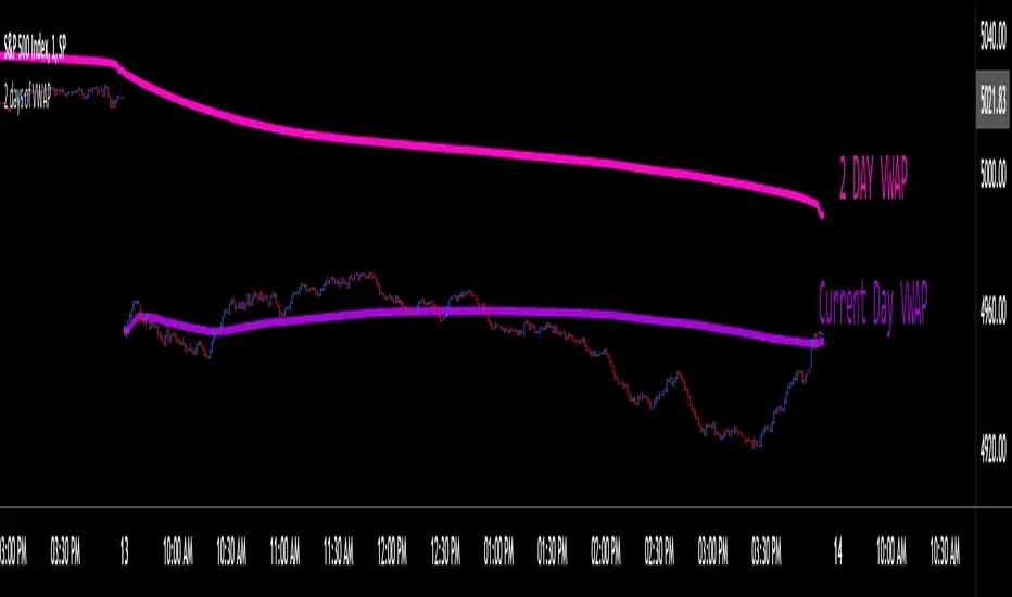 - Final VWAP values are plotted as lines on the chart, with optional labels for current and 2-day VWAPs for quick reference.