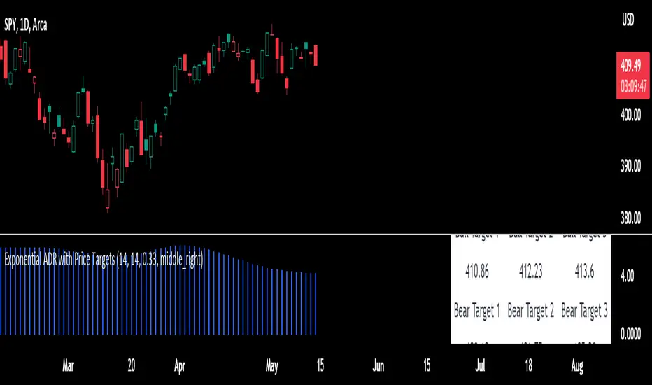 This script is designed to help you analyze price movements in the financial markets by calculating the Average Daily Range (ADR), adjusting it based on exponentiality and generating price targets based on that range.