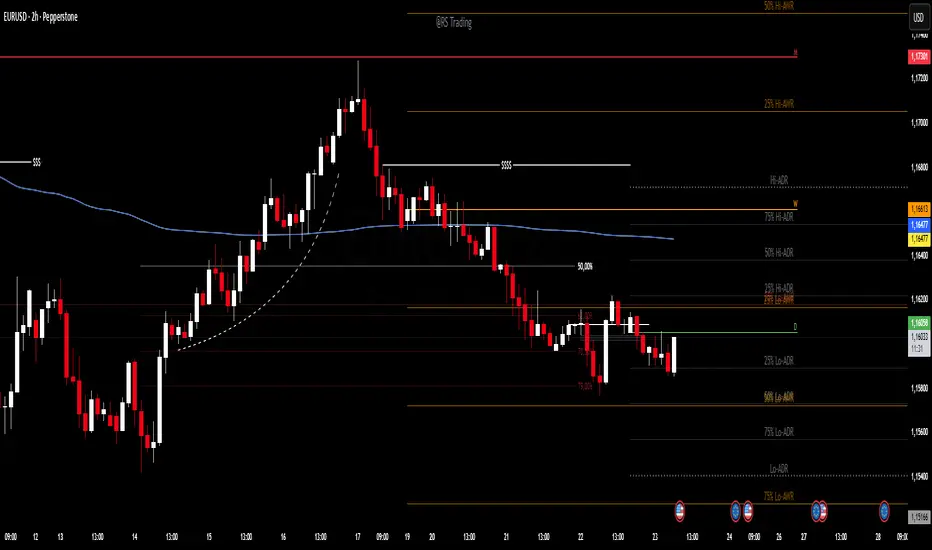This script uses the TR ADR/AWR/AMR indicator code and only the 25 and 75% levels for all 3 volatilities