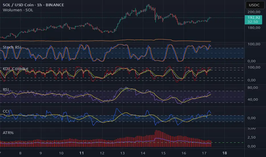 The ATR% oscillator measures market volatility as a percentage of the closing price, smooths it using a chosen method (RMA, SMA, EMA, or WMA), and compares it to the threshold levels of 0.95% and 1.20%.