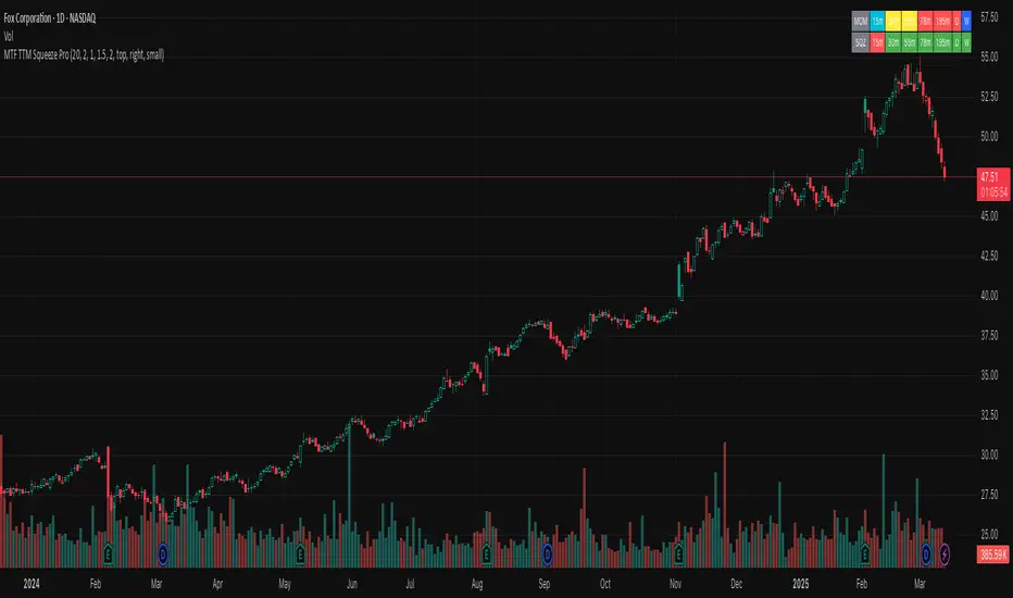 This script enhances the standard TTM Squeeze by providing a multi-timeframe view, allowing traders to assess market conditions across intraday, daily, and weekly charts simultaneously.