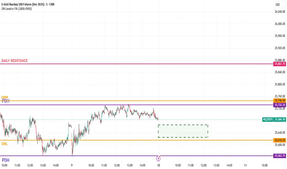 ONH/ONL levels act as magnet zones, liquidity pockets, and institutional decision points—commonly targeted during the opening drive and London/New York overlap. Whether price sweeps, reclaims, or breaks these levels, the reaction often creates reliable trade opportunities for scalpers and day traders.