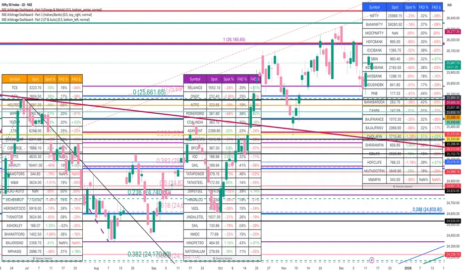This the SECOND of 5 series Indicators showing Live arbitrage opportunity in 3 Indices & 100 most Liquids FNO scrips of NSE. This series includes IT & Auto