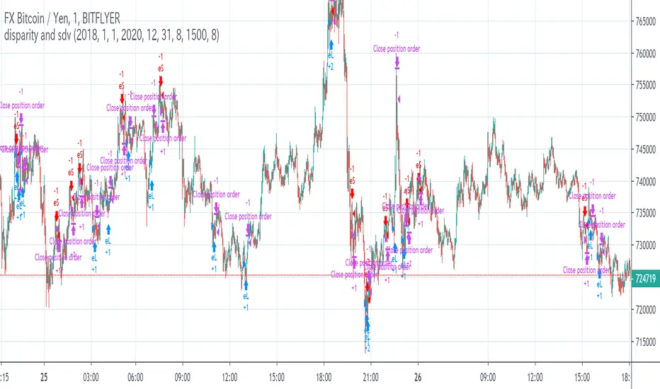To display disparity(sma) and standard deviation, and to draw a hline(pine function) a certain valu. And lets think. I thought disparity rate 1~1.3 or -1~-1.3 are able to use constrarian trade (and sdv>600).
