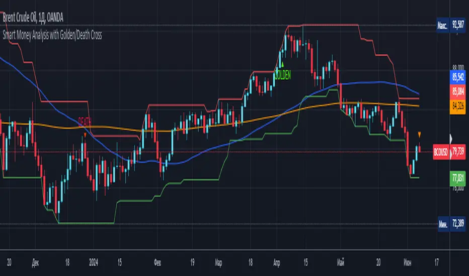 Description of the script "Smart Money Analysis with Golden/Death Cross":This TradingView script is designed for market analysis based on the concept of "Smart Money" and includes the detection of Golden Cross and Death Cross signals.
