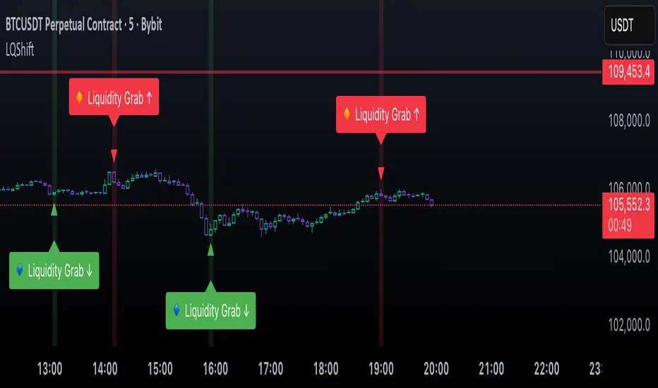 - Automatically detects both liquidity sweeps and the subsequent structural shift.