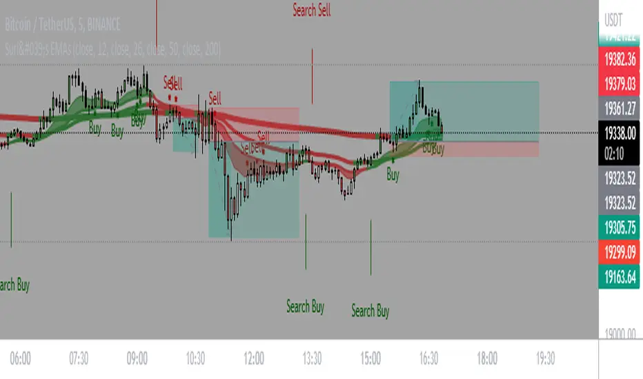 Now EMAs can be modified as per your operational.Wait for the "Search buy" or "Search Sell" signal, after the signal it is necessary that there is some significant movement for the EMAs to be used as dynamic support or resistance, without this movement it will be stop after stop.
