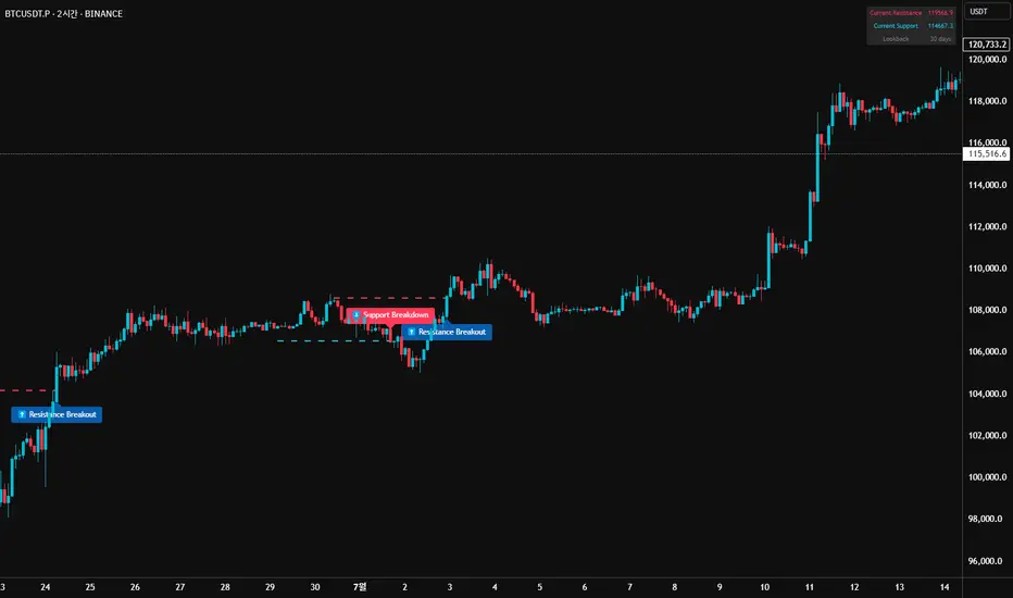 The visualization of support/resistance levels and preservation of historical levels enable clearer understanding of market structure, allowing traders to identify precise entry/exit points by observing price interactions with previous levels. This provides a powerful tool for comprehensive market analysis beyond simple signal generation, helping traders capture market turning points early.