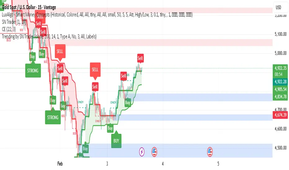 📈 SN Trader – ATR Trailing Stop Buy/Sell IndicatorSN Trader is a trend-following trading indicator based on an ATR Trailing Stop mechanism, designed to generate clear Buy and Sell signals with dynamic volatility-based stops. It works effectively for scalping, intraday, and swing trading across Forex, Indices, Crypto, and Commodities.