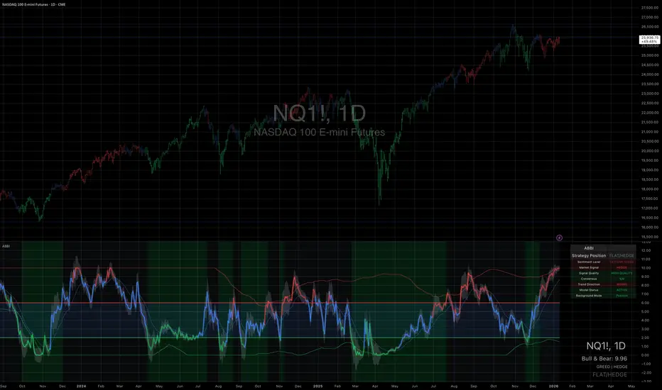 The Aggregate Bull and Bear Index employs a contrarian investment methodology that fundamentally diverges from trend following approaches prevalent in systematic trading. The trading logic rests upon the principle of accumulating positions when collective fear pervades market sentiment and liquidating those positions when greed dominates investor psychology. This approach stands in direct opposition to momentum strategies that amplify existing market movements rather than positioning against them.
