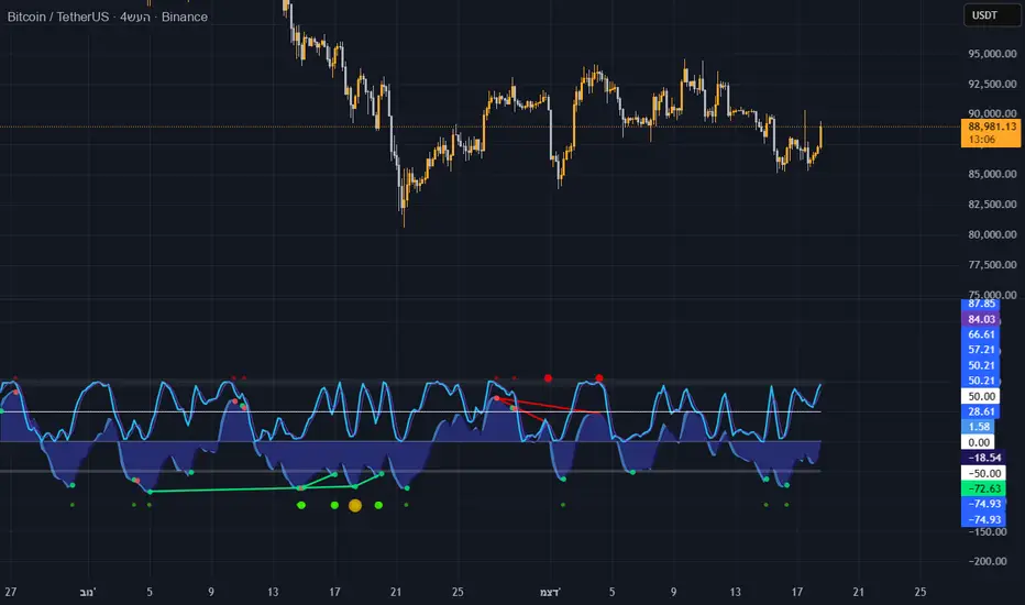 It highlights only relevant overbought / oversold momentum shifts and includes divergence detection, optional complementary oscillators, and visual signal markers designed to help traders spot high-probability market turns.