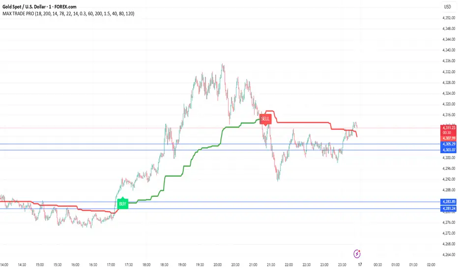 MAX TRADE (PRO) is a professional-grade TradingView indicator designed to deliver clean, high-quality BUY/SELL signals with a premium visual layout and clear risk management on the chart.