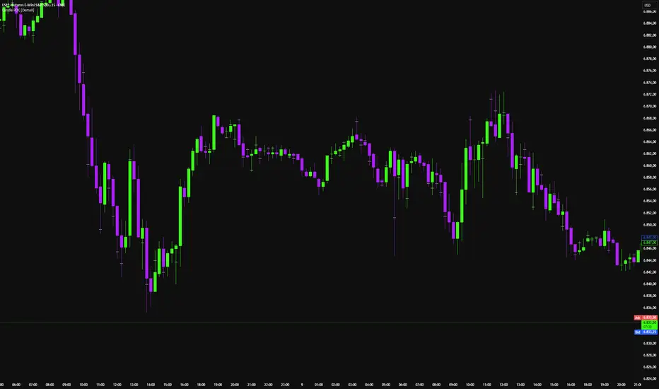 It is useful for identifying intracandle balance zones, absorption, and momentum shifts.