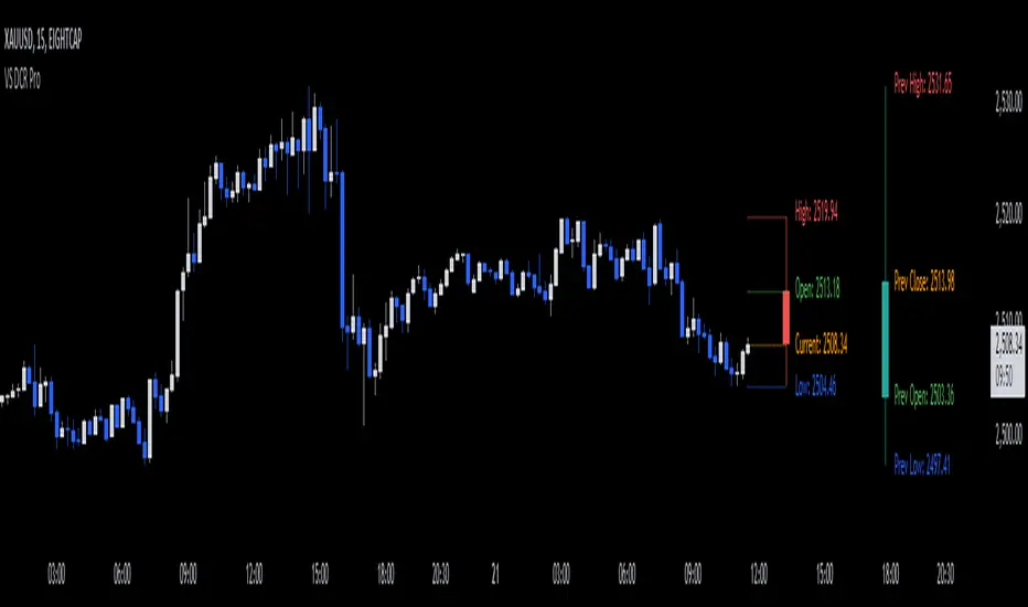 The "VS Dynamic Candle Replicator Pro" is a powerful and flexible Pine Script™ indicator designed for traders who want to gain a better understanding of price action by replicating key candle movements across various timeframes. This indicator allows users to project the Open, High, Low, and Close of any candle from a selected timeframe onto the current chart, making it easy to compare candle dynamics, anticipate future price movements, and identify potential reversal or continuation points.