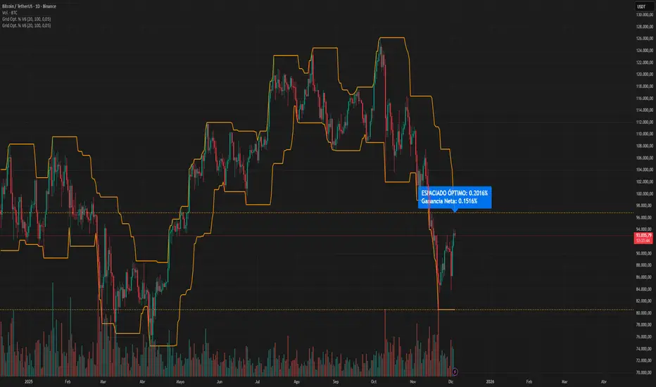 Optimizer for an infinity grid. Allows you to determine the optimal percentage for an infinity grid over a specific time range.