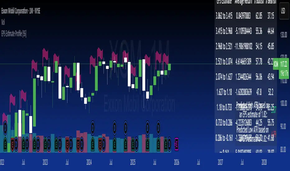 - Calculates the expected Open to High and Open to Low ATR based on the EPS estimate using regression.