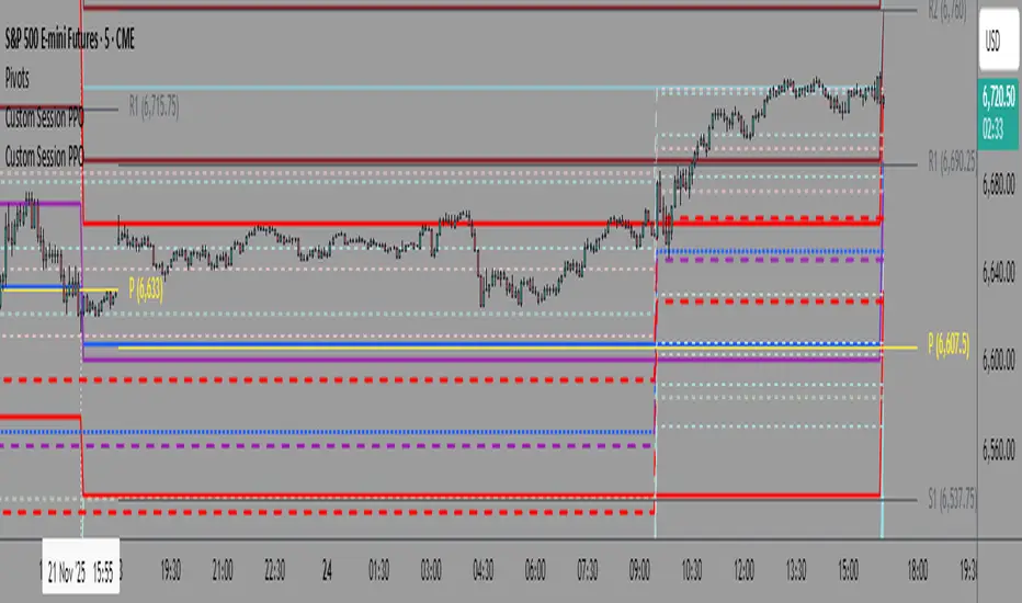 Custom Session Pivot Point and other level calculations