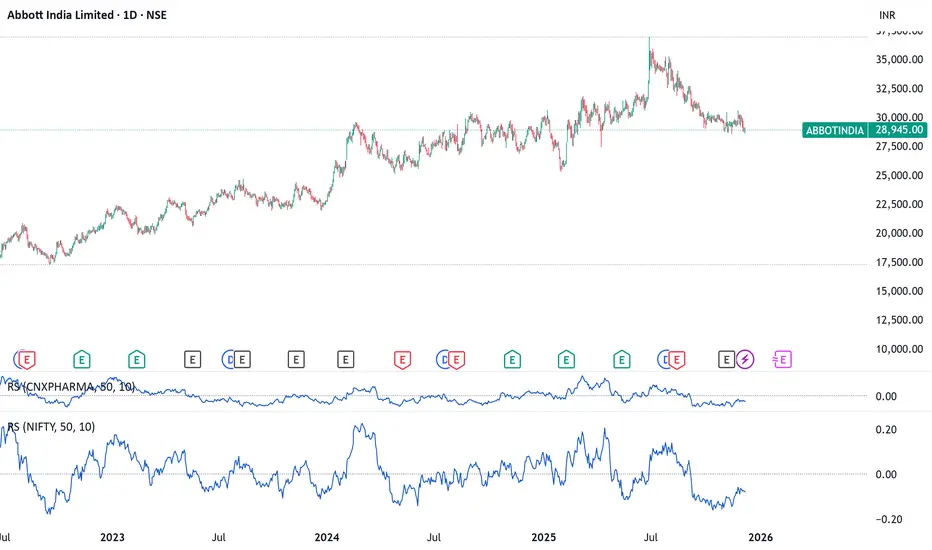 The Relative Strength Line compares the price performance of a stock against a benchmark index (e.g., NIFTY, S&P 500, Bank Nifty, etc.).