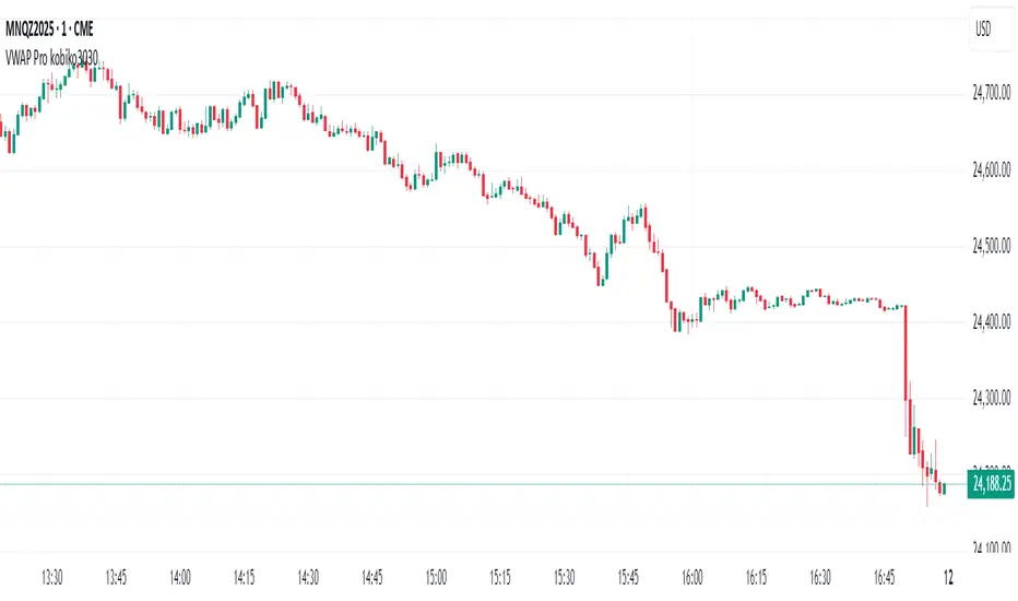VWAP Bands Pro is an advanced indicator that combines the power of VWAP with 4 dynamic bands for precise identification of support and resistance zones. This indicator is designed for professional traders who want deep and accurate market movement analysis.