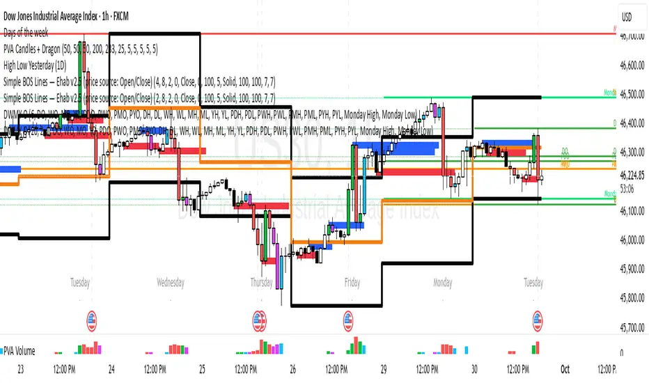 Lightweight indicator that plots the current open and the previous period’s open for the four key cycles: Daily, Weekly, Monthly, and Yearly. It’s built for quick bias reads, gap context, and clean retest zones.