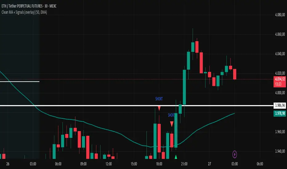 indicator("Clean MA + Signals (overlay)", overlay=true)