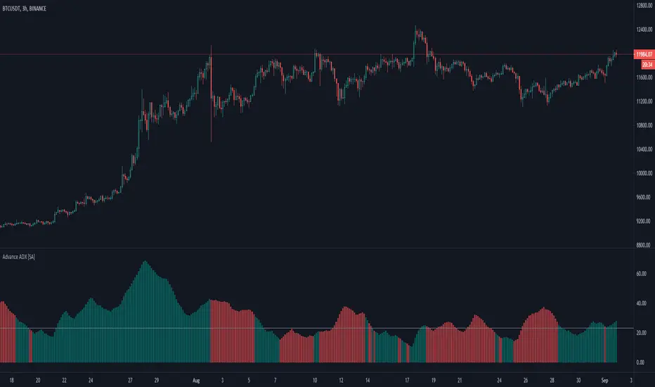 Our version of ADX DMI indicator with option to show ADX as histogram or line.