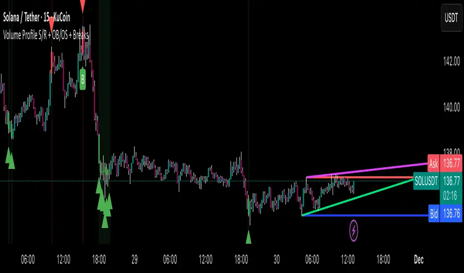 업데이트됨 Volume Profile S/R + OB/OS + Breaks