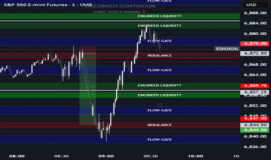 The indicator applies Power of Three (PO3) dealing ranges to visualize institutional price cycles using Goldbach-based mathematical levels. Price is organized into Liquidity, Flow, and Rebalance layers, highlighting where liquidity is engineered, directional bias is established, and price temporarily pauses or redistributes risk.
