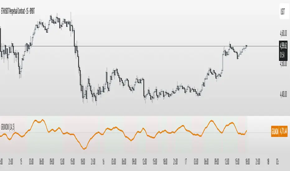 GRJMOM stands for Generalized Risk-Adjusted Momentum. This indicator adjusts traditional momentum by dividing it by realized volatility over the same formation period. The result is a cleaner, more risk-sensitive momentum signal designed to avoid momentum crashes and volatility-driven false breakouts.
