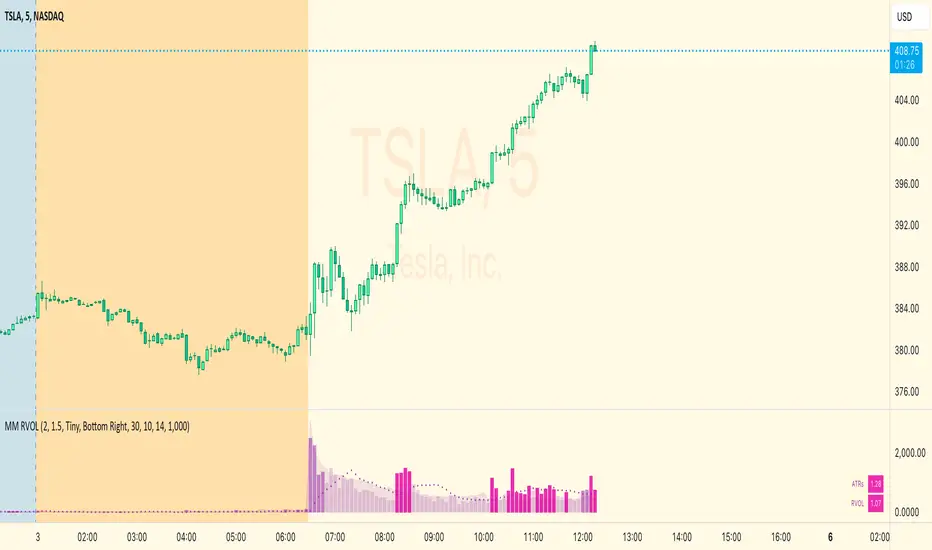 This particular implementation of RVOL has never been done before on TradingView to my knowledge. Most other indicators use a rolling average of the prior 30 days which is much easier to do, but this doesn't actually work properly because instead of getting large volume spikes from prior days filtered out correctly, it takes a LOT longer for those to even out as the rolling average eventually smooths down. Instead, with this indicator, any large/small volume days will truly drop off after the moving average length and the calculated average daily volume (ADV) will be accurate up to the minute. For more details on the original concept behind this indicator, check out the blog linked on my profile.