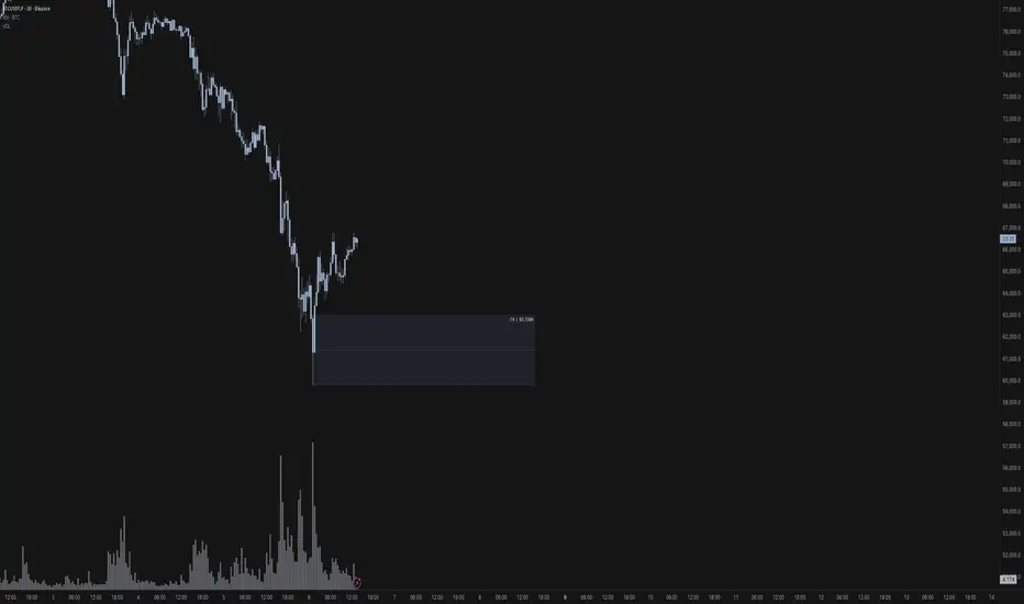 Locates highest volume candle based of custom look back and extends a range with mid-line, candle volume is displayed within the zone.