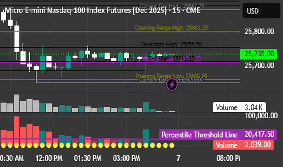 Indicates when the volume passes the desired percentile over a 3 day period of selected timeframe.