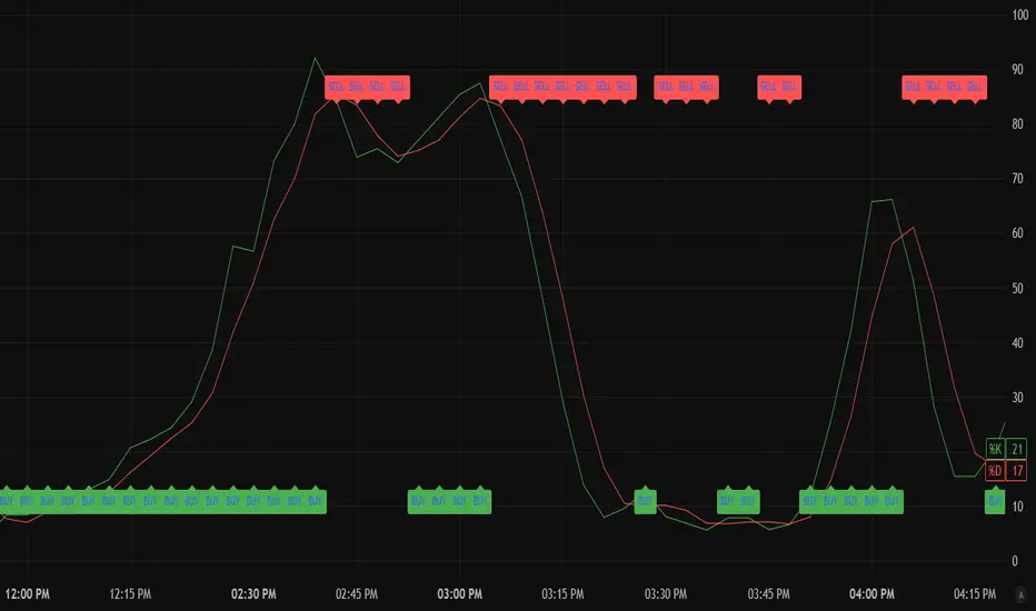 buy and sell indicator for slow stochastic, basic indicator to show buy and sell position based on slow stochastic 3 minute time frame.