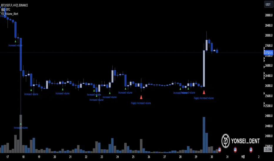 "YD_Volume_Alert"는 거래량 증가에 따른 얼러트를 제공하는 간단한 지표입니다.