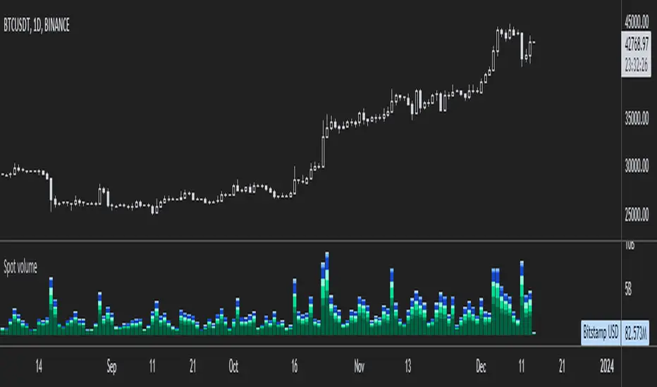 Indicator with aggregated volume for all the most actively traded bitcoin spot markets.