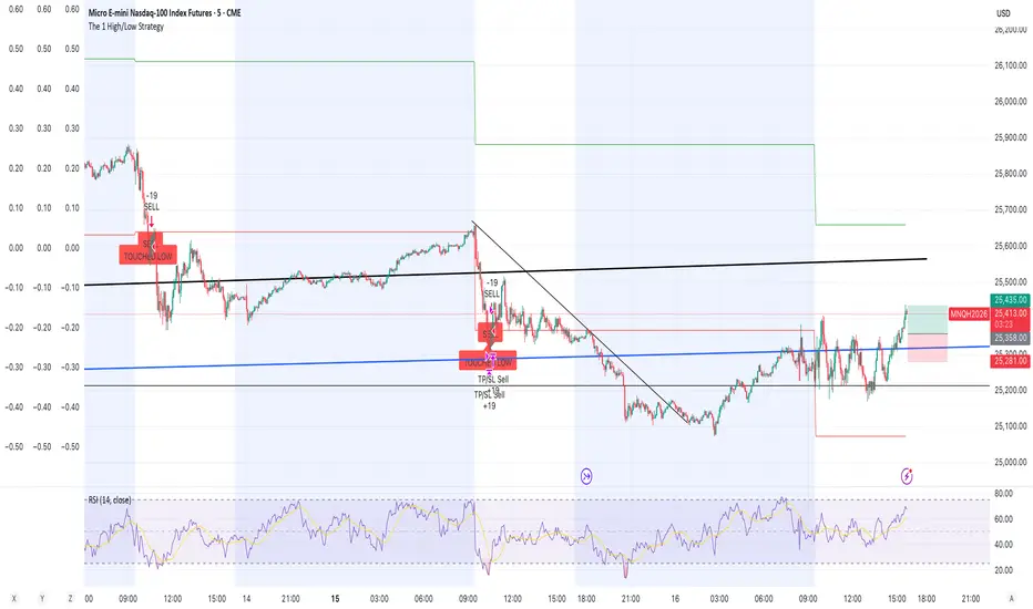 This strategy takes advantage of price Support and Resistance at High and Low level points of the day to enter high Risk to Reward positions with a high win rate.