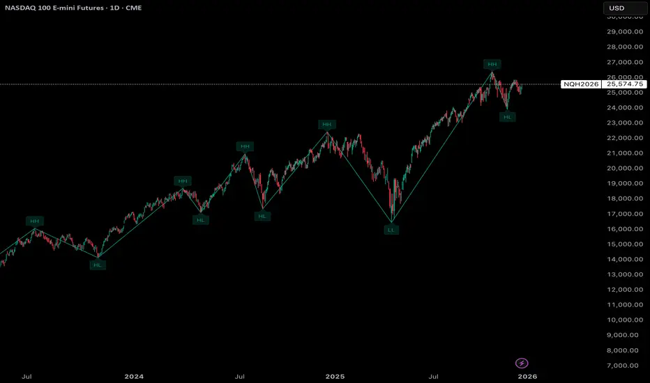 HH (Higher High): Current swing high is above the previous swing high → bullish structure