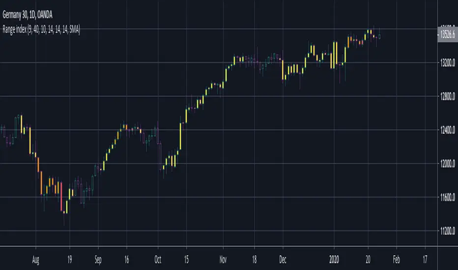 This is the bar color version of the indicator. It changes the color of the bars when it it thinks the market is ranging and when it thinks it is trending.